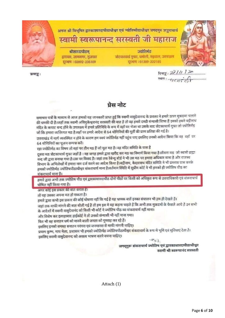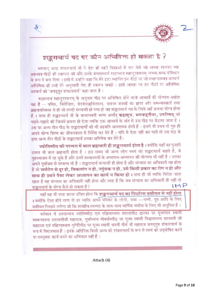 • Furthermore, the usage of the title “Jagadguru” and “Shankaracharya” by someone not yet fully seated in accordance with Mahanushasana raises serious questions.